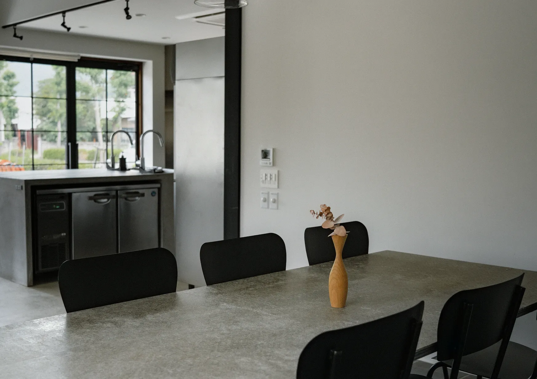 多目的にご利用いただけるテーブルと椅子を備えたスペース